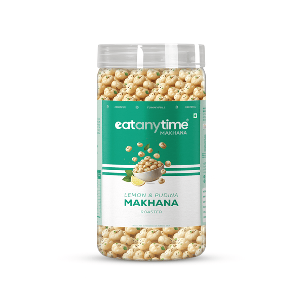 For those searching for a snack that combines flavor, nutrition, and convenience, Eat Anytime’s Lemon Pudina Makhana is an excellent choice. Its balanced taste of zesty lemon and cool mint, combined with wholesome ingredients, make it a standout option in the healthy snacking category. Whether as a midday pick-me-up or a flavorful companion on the go, this snack caters to both taste and wellness needs effectively.